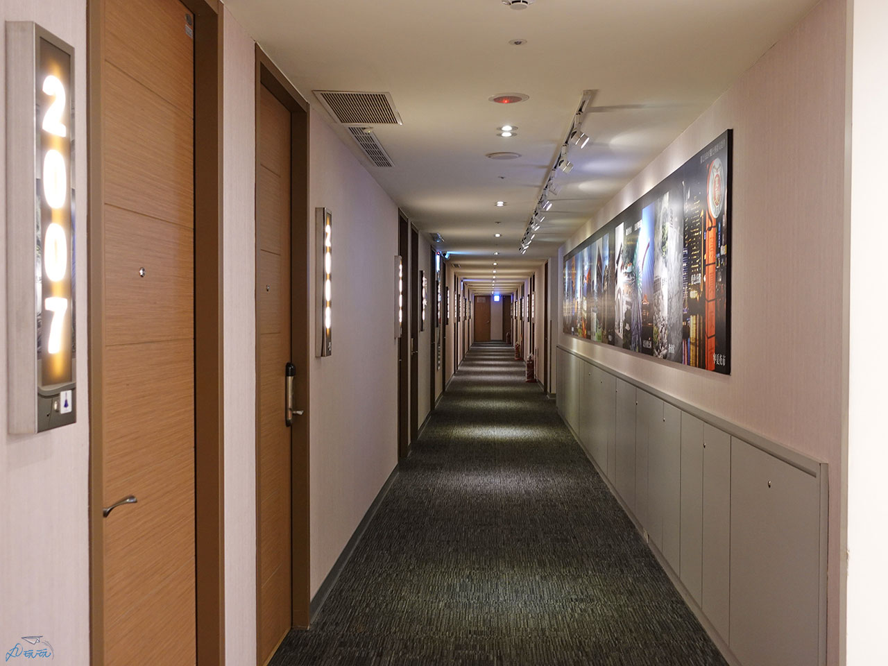 客房廊道明亮乾淨,並帶有許對充滿台灣特色意象圖片,展現台灣人文之美。