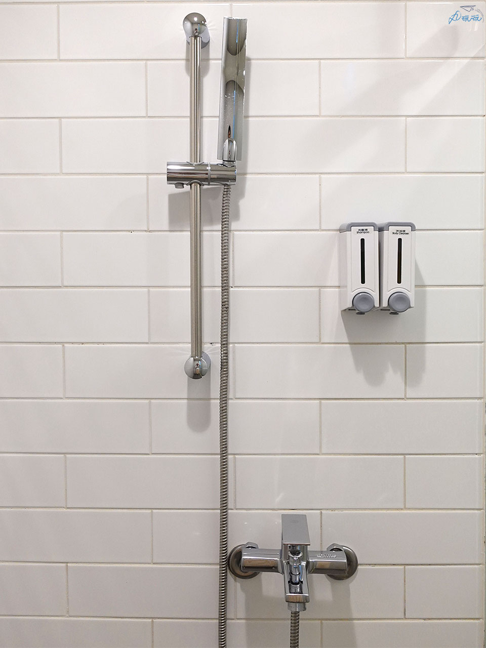 淋浴間空間大小適中,免費供應洗髮乳和沐浴乳,且洗手台旁都帶有吹風機。
