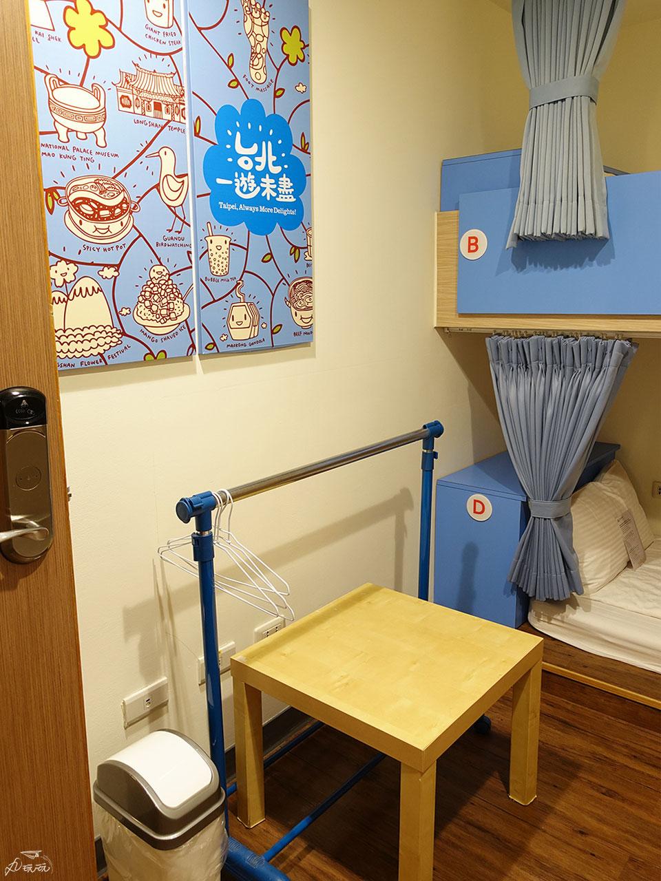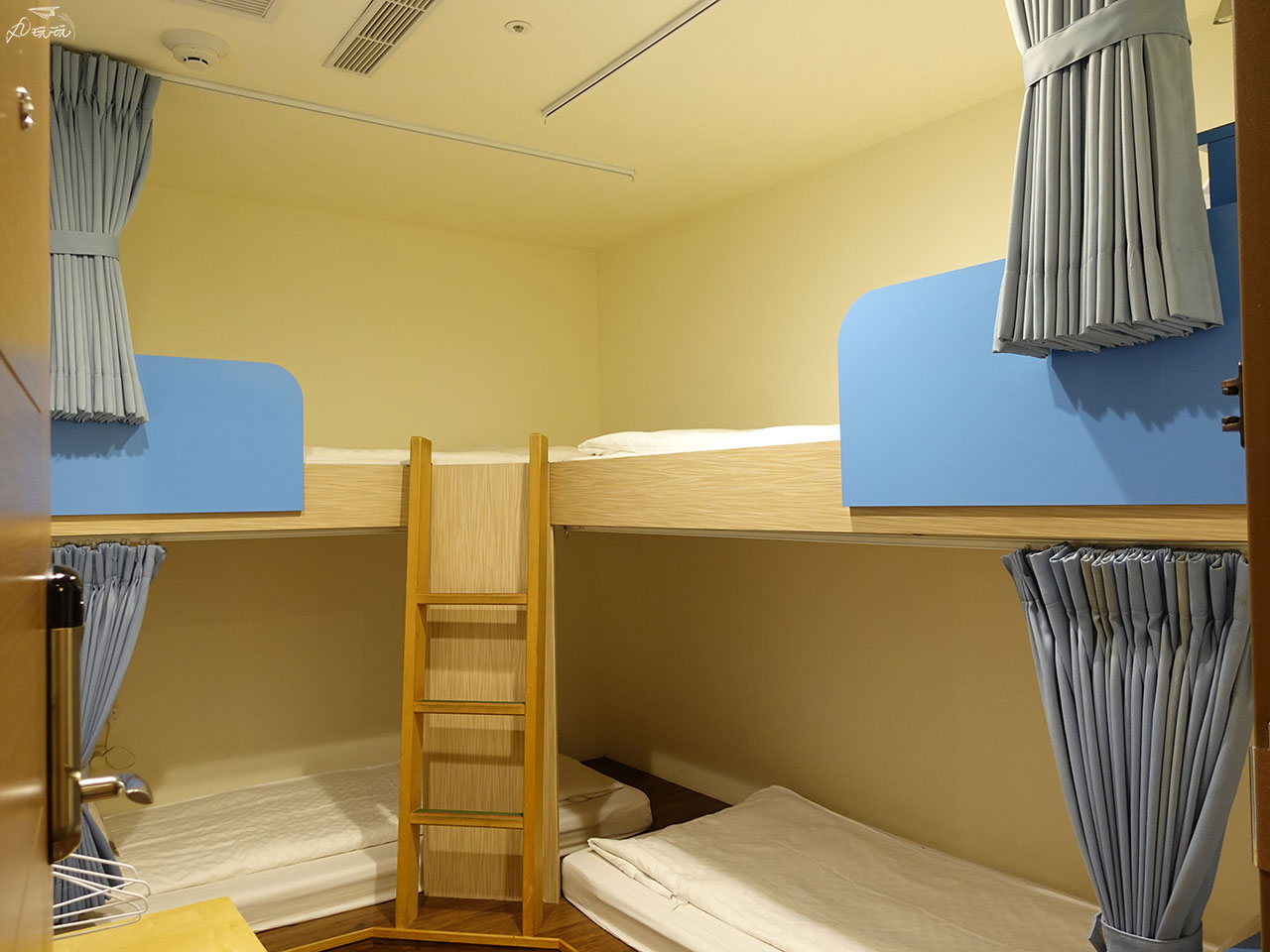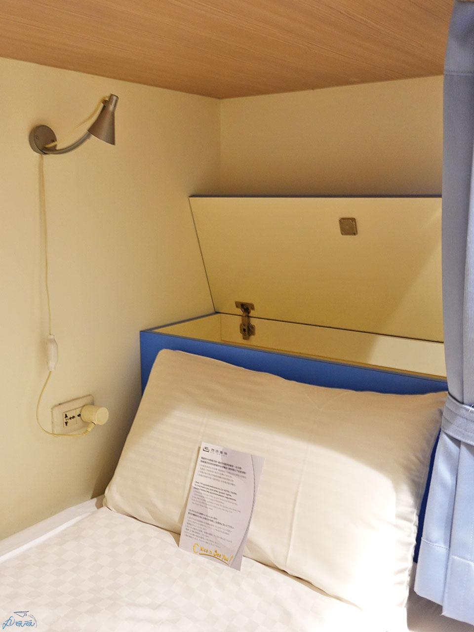 每個床位有獨立拉簾保有隱密性,以及獨立照明燈不擔心干擾其他房客。此外,床頭部分設有個人帶鎖置物櫃,可向櫃檯租借鑰匙,供置放個人行李或貴重物品。