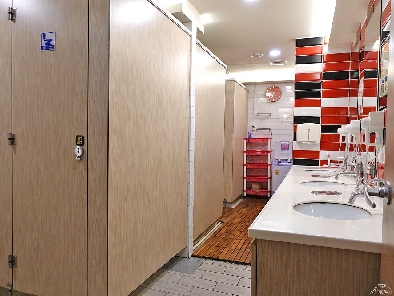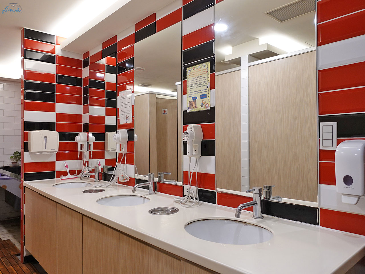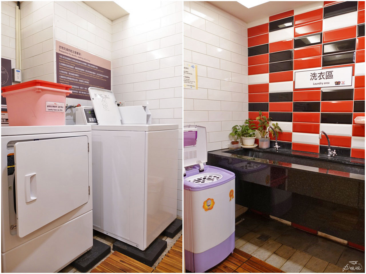 衛浴空間旁的洗衣房設有投幣式洗衣機和烘衣機,以及手洗區和脫水機。看完青年房型所使用的空間,不但設備完善齊全,而且整潔度非常高呢!