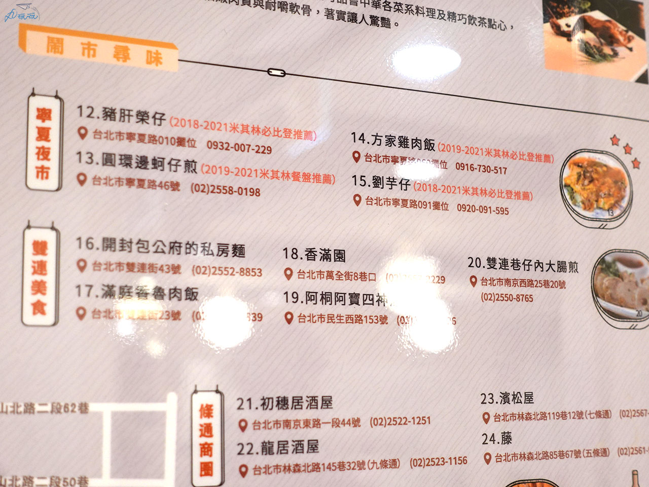 饕客不容錯過的重點資訊,直接將附近商圈像是寧夏夜市、雙連商圈和中山條通商圈的餐廳,畫重點出來!