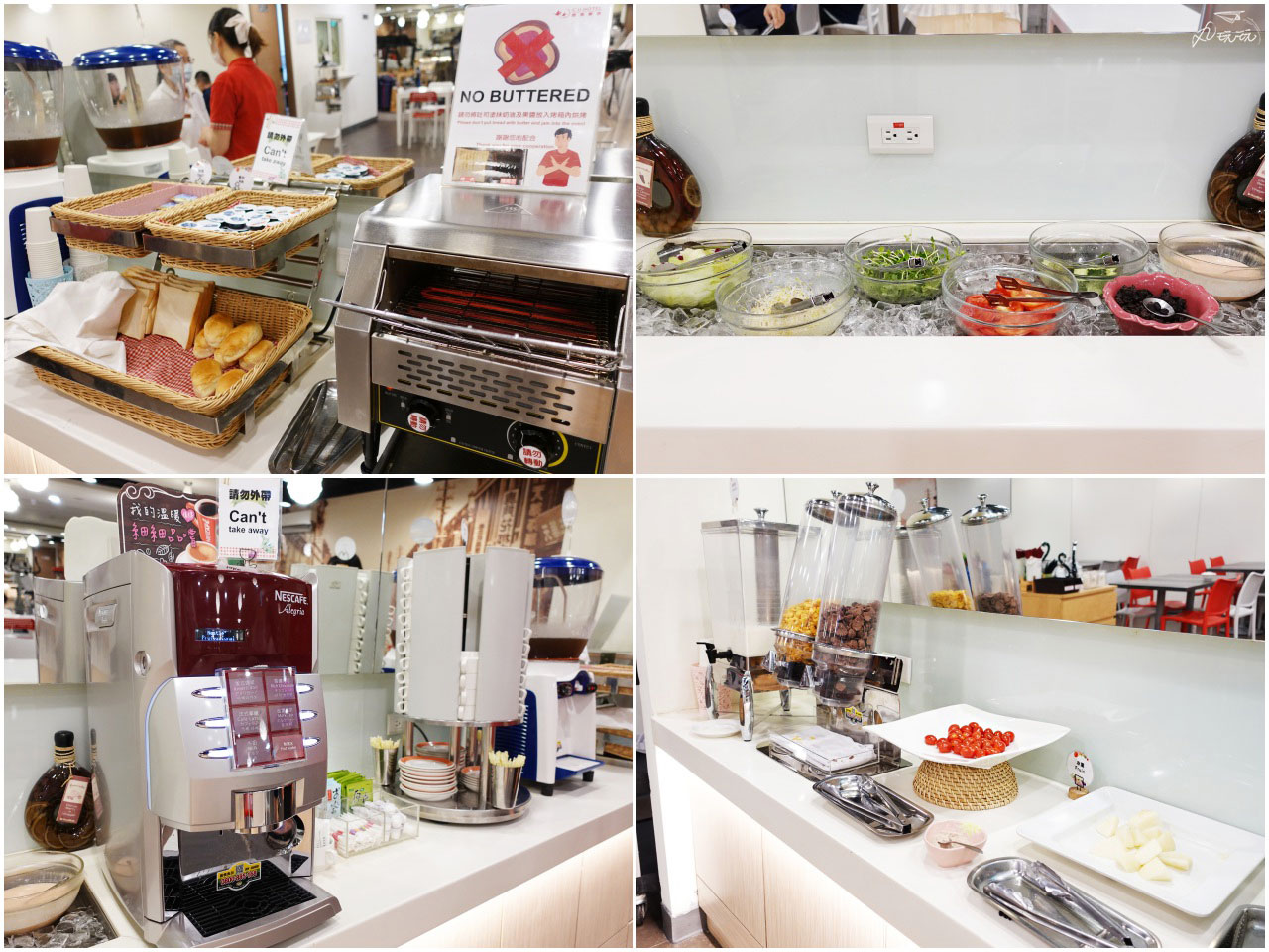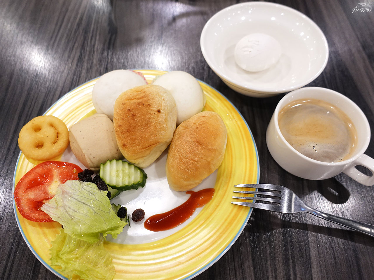 早餐供應時段從7點開放至10點,採自助模式,有中式和西式供選擇。自助區衛生乾淨,工作人員更是隨時待命在側注意菜量狀況,隨時補菜。