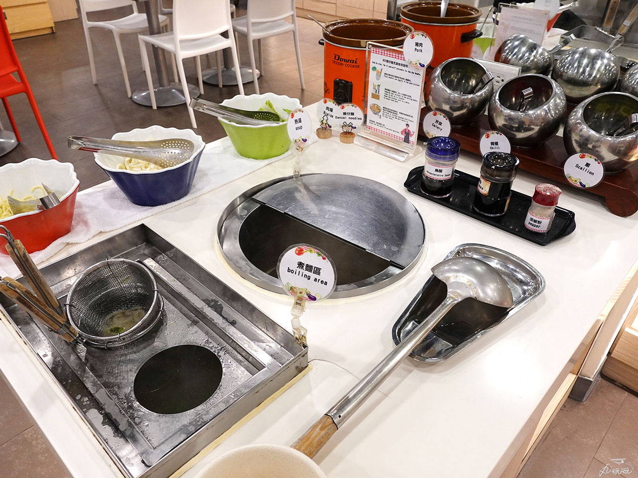 其中,最推薦自助陽春麵區,充滿台灣小吃特色,體驗自己的陽春麵自己煮的趣味!