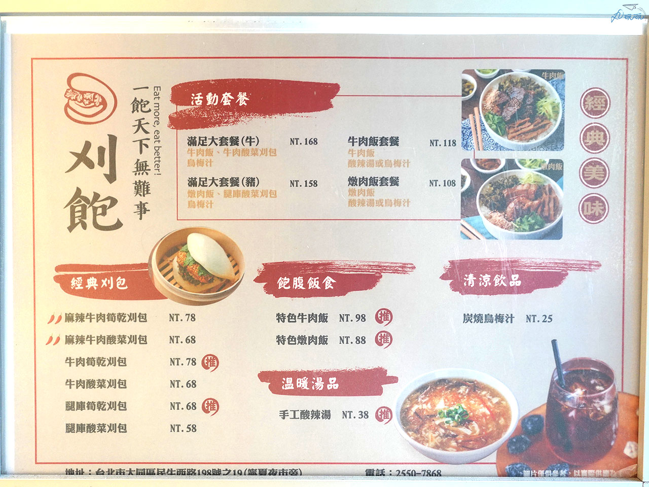 除了經典口味的割包也有創新口味,嫌吃不夠的朋友還有飯食可選,刈飽菜單歡迎參考。