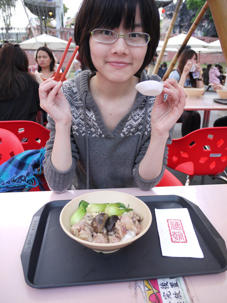 我吃著老董牛肉麵、秋秋吃唐朝的滑菇蒸飯。