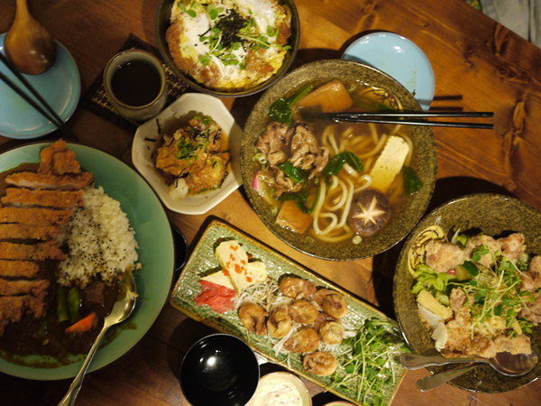 勝丼、豬排咖哩飯、炸雞沙拉、燒肉烏龍麵、炸混沌、炸豆腐
