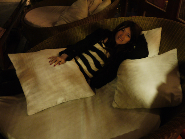 滿足的享用完美食後,餐廳外頭還有大大圓形的躺椅供客人休憩